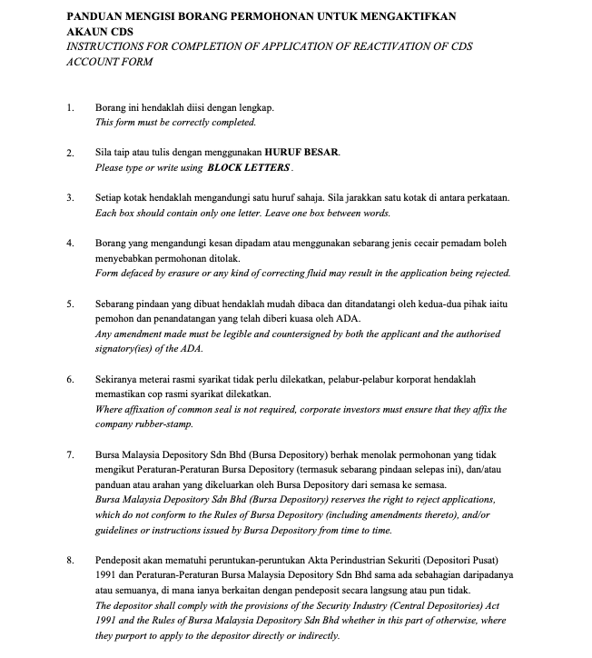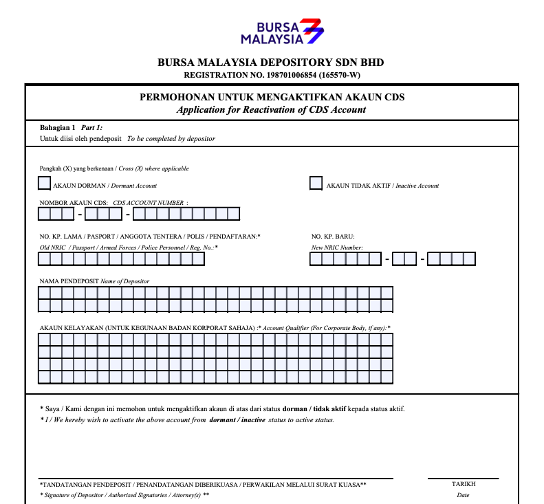 1. Muat turun borang permohonan pengaktifan akaun CDS dan cetak borang tersebut.