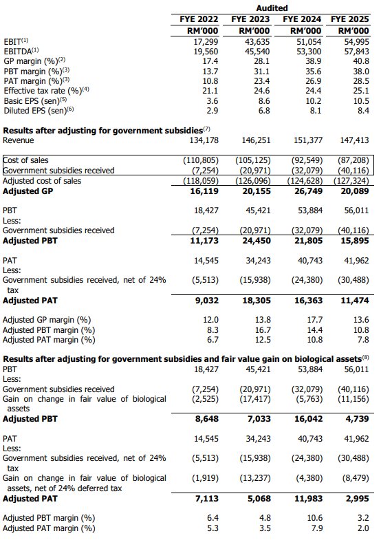 Net Profit (Reported): Melonjak drastik daripada RM14.5 juta (2022) kepada RM42.0 juta (2025). Margin Keuntungan Bersih (Net Profit Margin) juga meningkat kepada 28.5%.