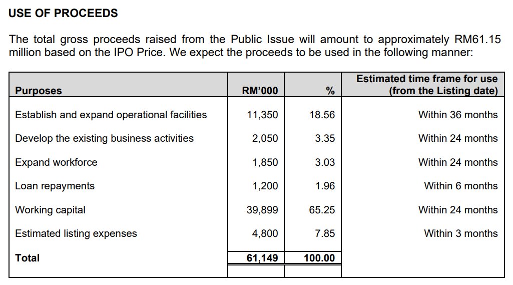 Baki dana akan digunakan untuk melunaskan pinjaman bank bagi penjimatan kos faedah dan menampung perbelanjaan berkaitan proses penyenaraian IPO ini.
