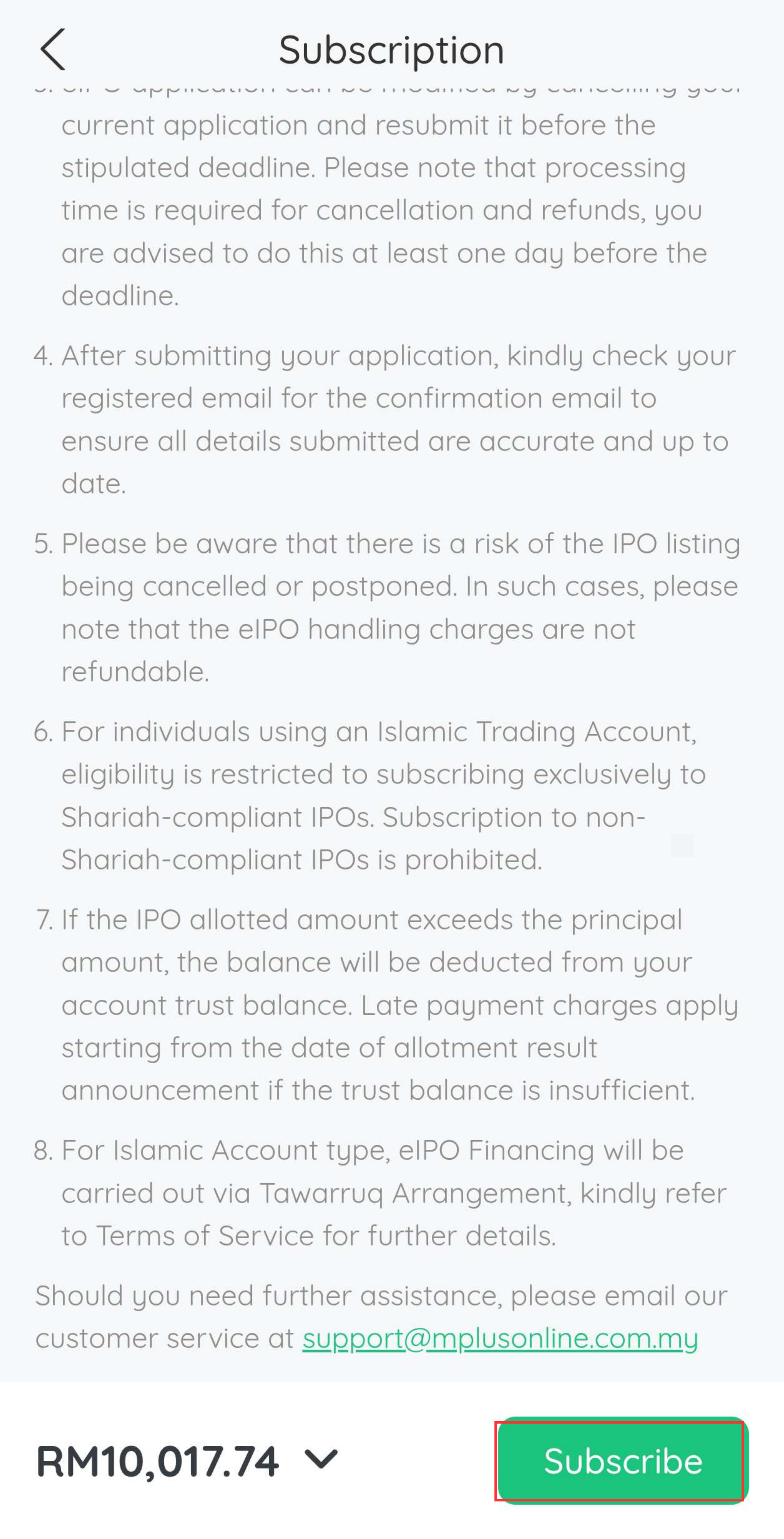 Langkah 6: Baca terma dan syarat kemudian klik "Subscribe"