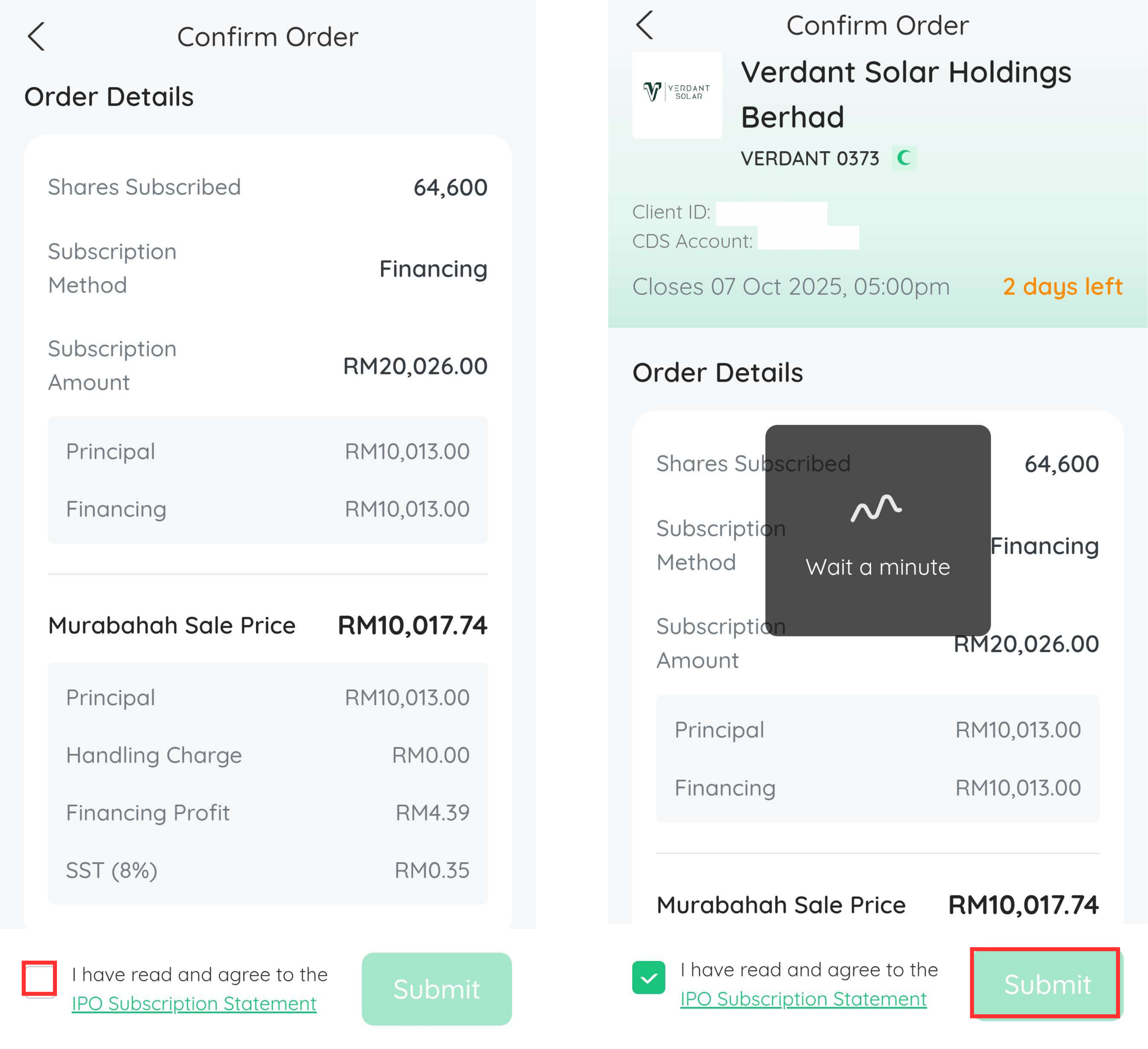 Klik "I have read and agree to the IPO Subscription". Klik butang "Submit".