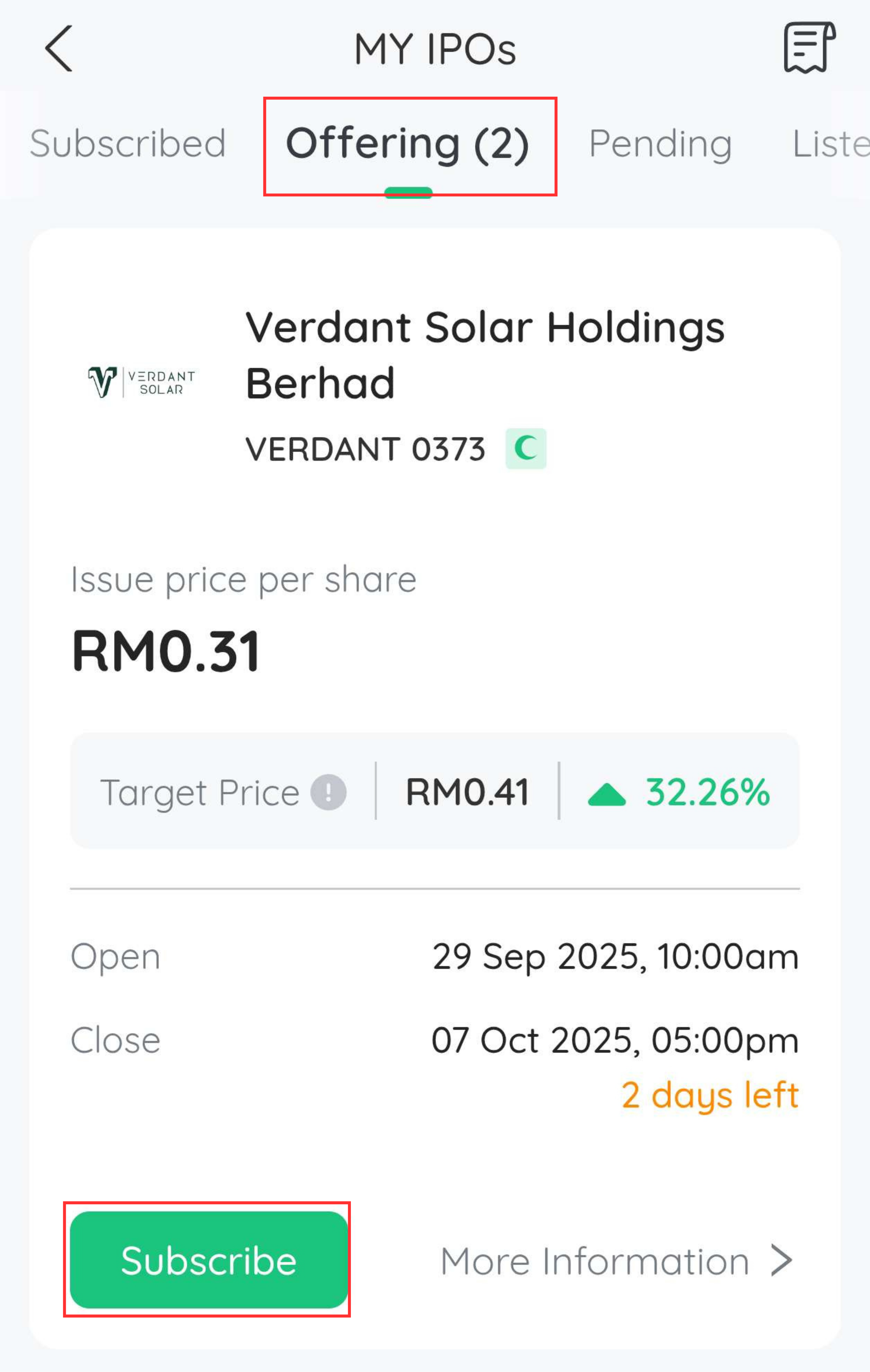 Pergi ke bahagian IPO yang anda ingin mohon. Klik "Subscribe"