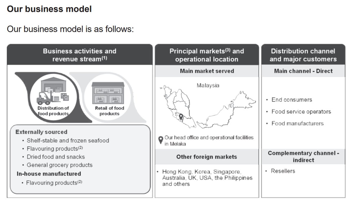 GHS Holdings terlibat dalam pengedaran dan pembuatan produk makanan premium seperti makanan laut sejuk beku dan bahan perasa masakan di bawah jenama Heng’s dan Makbest.