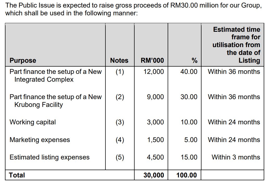 Daripada penyenaraian ini, GHS Holdings dijangka mengumpul kira-kira RM30.0 juta. Dana tersebut akan digunakan seperti berikut: