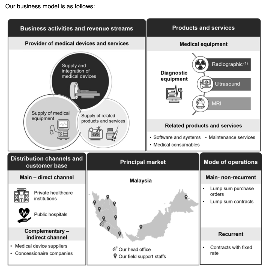 Secara keseluruhan, perniagaan LAC Med tertumpu kepada pembekalan dan integrasi peranti perubatan. Sebagai pengedar sah di Malaysia dan Indonesia, syarikat ini membekalkan peralatan perubatan daripada jenama pihak ketiga yang majoritinya digunakan untuk tujuan diagnostik.