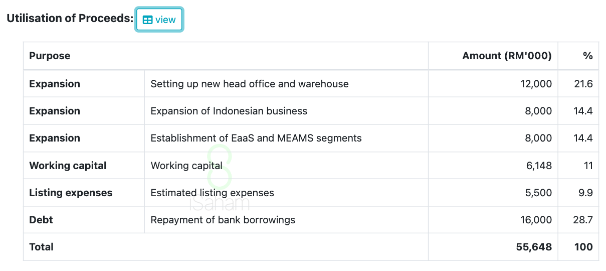 Tujuan utamanya adalah untuk mengumpul dana bagi perbelanjaan modal, termasuk menubuhkan ibu pejabat dan gudang baharu, mengembangkan perniagaan di Indonesia, membangunkan segmen perniagaan baharu (EaaS dan MEAMS), serta untuk pembayaran balik pinjaman bank dan modal kerja.