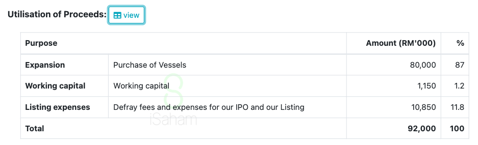 Penggunaan dana terbesar jelas ditumpukan kepada perbelanjaan modal (Capital Expenditure atau CAPEX) untuk pembesaran dan pemodenan armada kapal mereka. Syarikat merancang untuk memperoleh dua buah lagi kapal tangki kimia/petroleum dalam tempoh 24 bulan selepas penyenaraian. Dana IPO sebanyak RM80.0 juta akan digunakan untuk membiayai sebahagian daripada kos pembelian salah sebuah kapal tersebut. Ini menunjukkan strategi syarikat yang jelas untuk mengukuhkan lagi kedudukan mereka di pasaran dan memenuhi permintaan yang semakin meningkat.