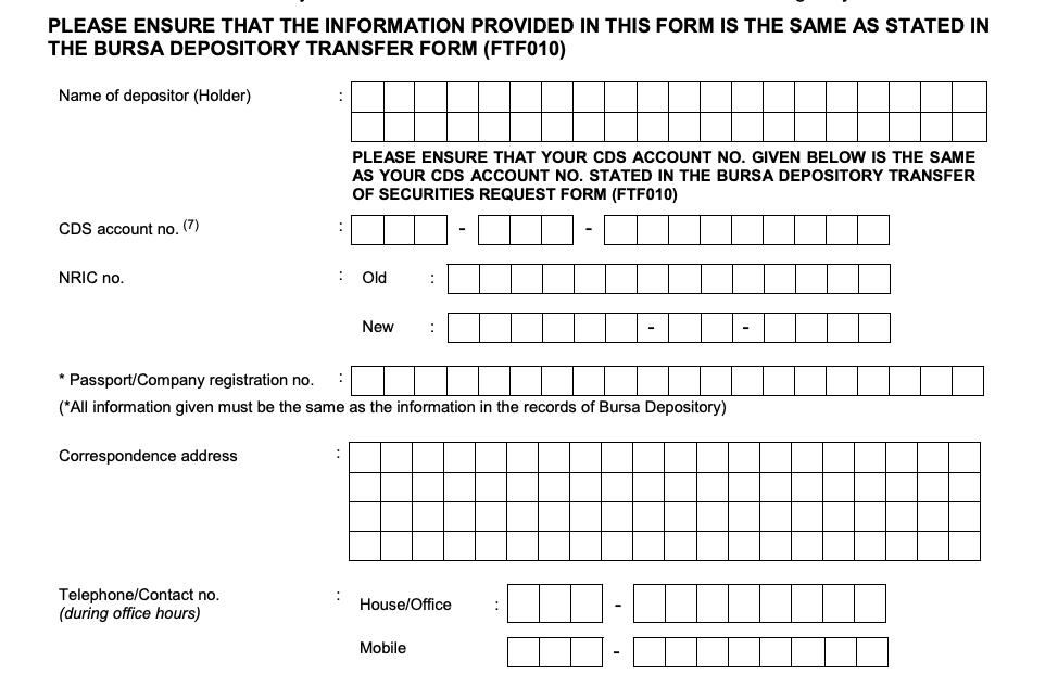 - Mesti konsisten dengan borang FTF010 dan rekod Bursa.