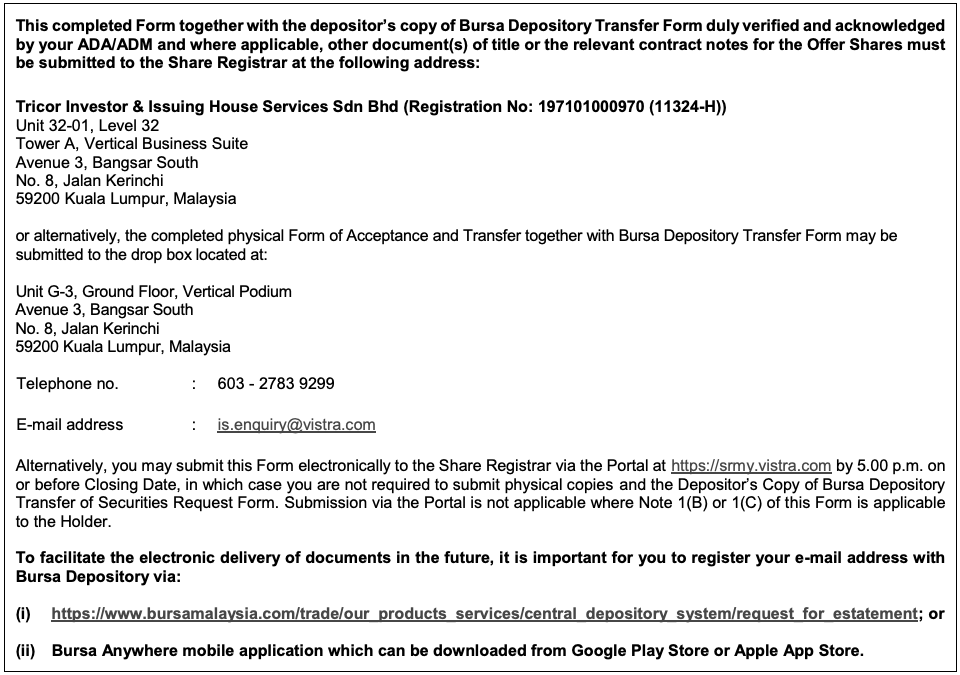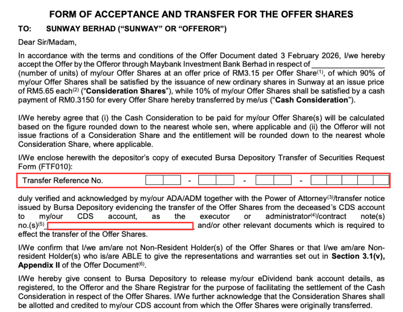 Ini merupakan langkah paling kritikal kerana borang ini bertujuan memindahkan saham daripada akaun CDS anda kepada akaun CDS pihak pengambil alih.
